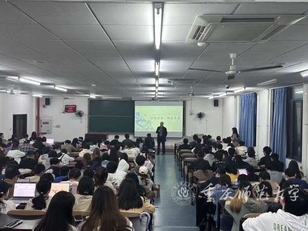 楊建從“過去”出發,以自己在重師的校園經歷為例,提前讓同學們填寫調查問卷。接著,他從“大學與擇業”“教學與研究”“教育與探索”三個部分展開講座。在“大學與擇業”角度,楊建指出,同學們要把握住在校園求學的時光,精進自己的學識,有條件的話可以繼續深造,讀研讀博。他列舉了部分歷史學的擇業去處,解答了同學們關心的考編問題。在“教學與研究”角度,楊建為同學們解答了進入教師行業可以做的準備。他指出,要以“模仿立足”“融匯立身”“研究立業”“創造立命”。在“教育與探索”部分,他根據自身教師經驗,提出了“獨善其身”“兼濟一班”“善治一校”“影響一域”的字字箴言。