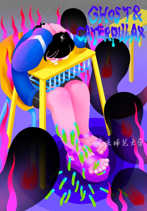 來(lái)自美術(shù)學(xué)專業(yè)的胡雅涵提到她們?cè)M(jìn)行了為期三個(gè)月的美術(shù)教學(xué)實(shí)習(xí),在此期間認(rèn)識(shí)到了創(chuàng)作和教學(xué)實(shí)踐的不同。“我們學(xué)習(xí)美術(shù),不只是為了自己的創(chuàng)作,還要注意它的教化意義,承擔(dān)起美育的責(zé)任。因此,在授課中我們要注意抓住孩子們的興趣,以他們能夠接受的方式欣賞美。”而在傳遞美方面,來(lái)自視覺(jué)傳達(dá)設(shè)計(jì)專業(yè)的周思懿就采用了更為大膽的方式。她關(guān)注到多指畸形癥者的現(xiàn)實(shí)生活和內(nèi)心渴望,并因此結(jié)合這一主題創(chuàng)作了系列插畫(huà),通過(guò)將多指患者內(nèi)心世界扭曲外化,來(lái)展現(xiàn)他們因多指而產(chǎn)生的自卑情緒和心理問(wèn)題。以創(chuàng)作美的方式表現(xiàn)世人所認(rèn)為的“丑”,以強(qiáng)烈的對(duì)比引發(fā)觀看者對(duì)“何為美”的深層次思考,以及對(duì)這一先天不幸群體的關(guān)注和同情。老師賦予“群青”學(xué)子感知美的方法,“群青”學(xué)子便將美傳承與傳遞下去。